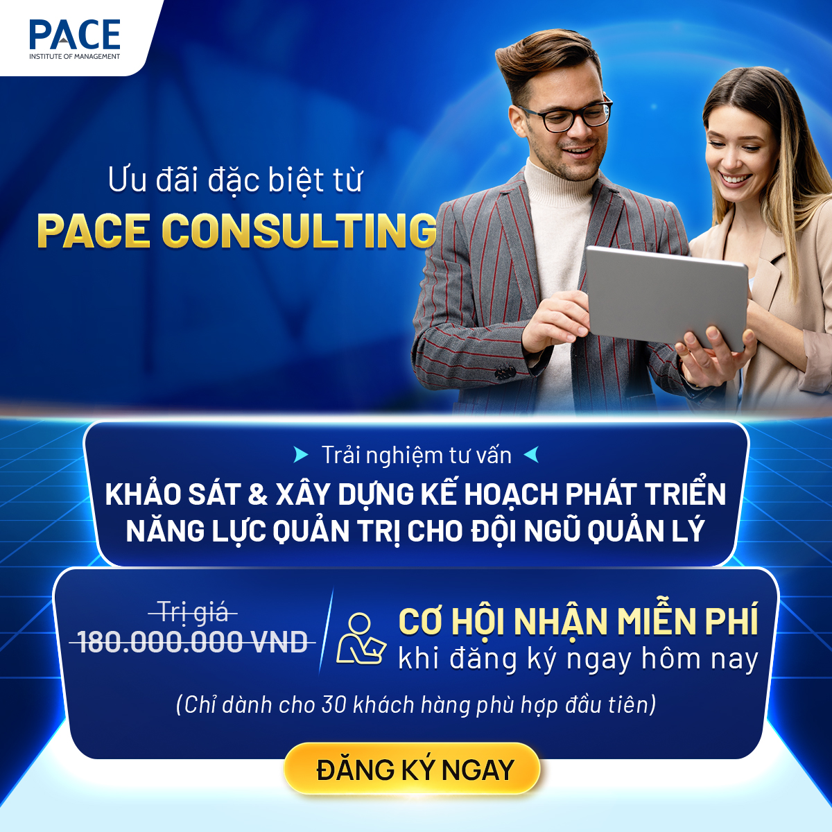 Nhằm đồng hành cùng doanh nghiệp đánh giá và tối ưu quản trị kịp thời cho giai đoạn bứt phá tiếp theo, PACE Consulting triển khai 02 ưu đãi chiến lược:
